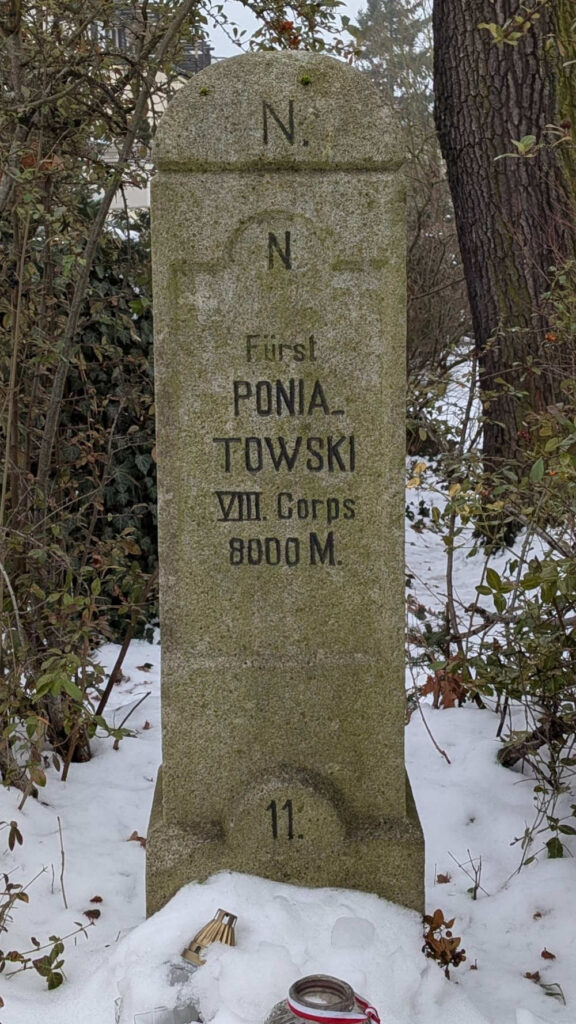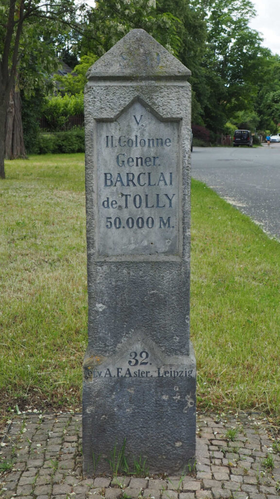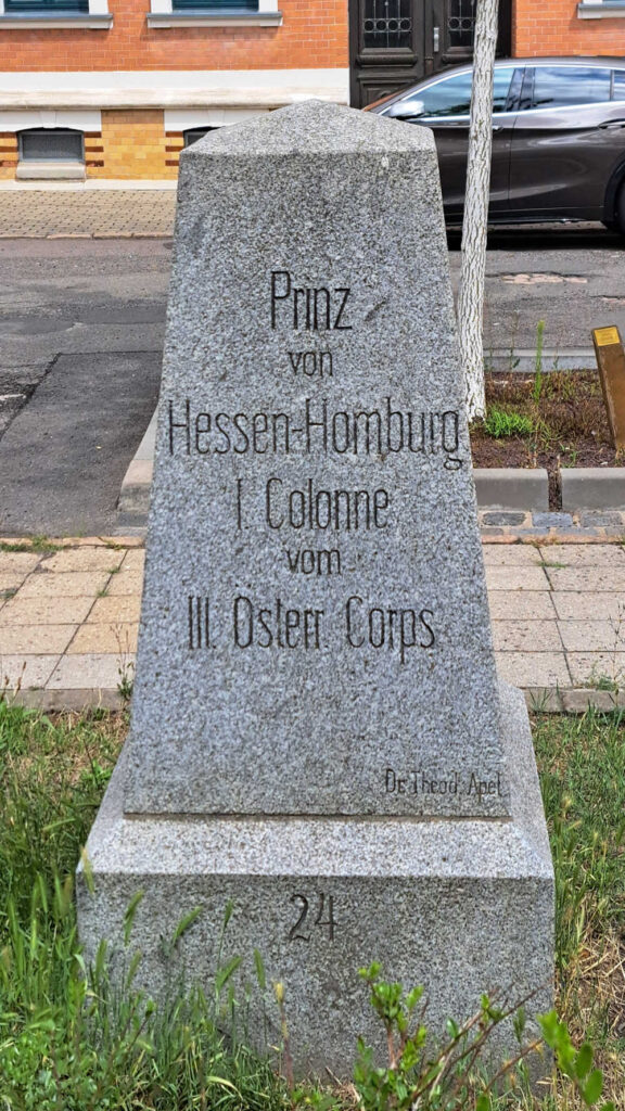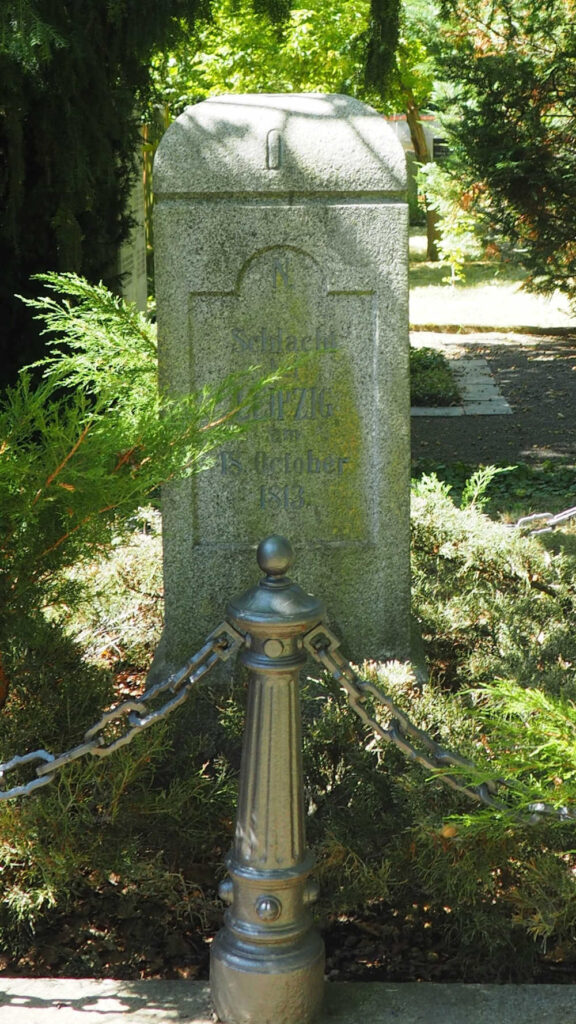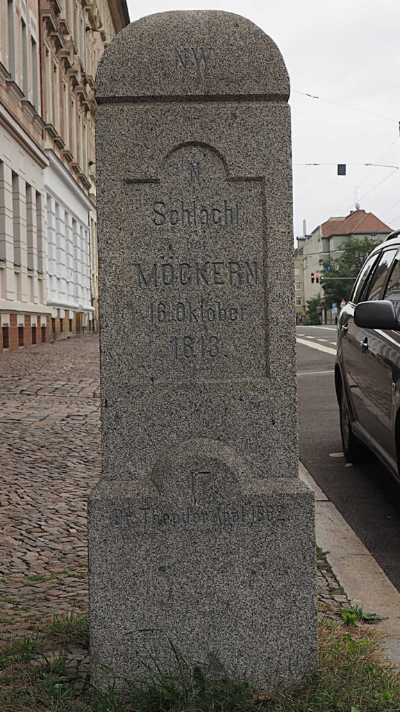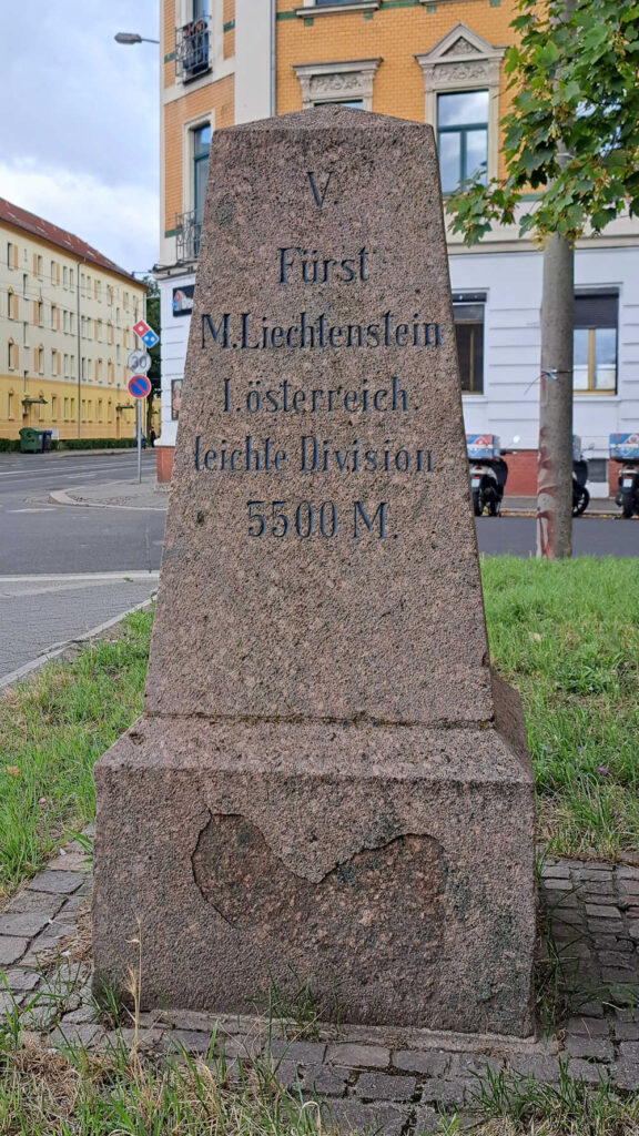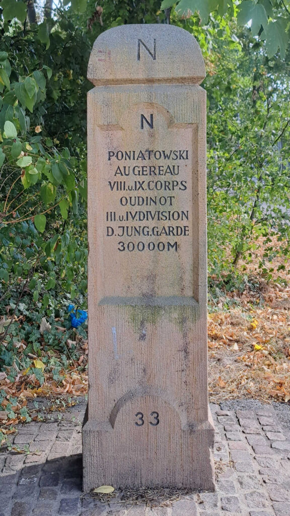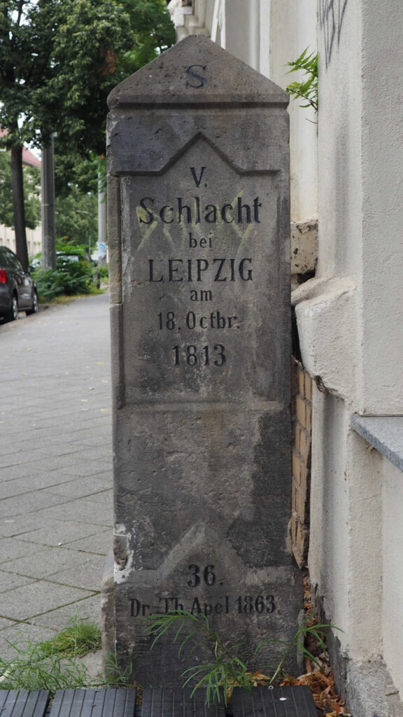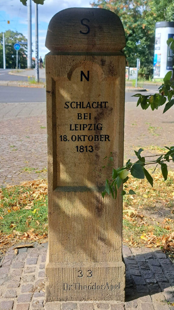 Inschrift zum Schlachtfeld hin: Schlacht bei Wachau, 16. October 1813