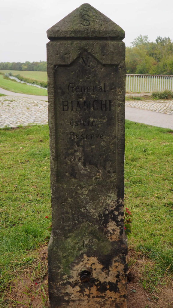 Inschrift vom Schlachtfeld weg: Feldmarschalleutnant Graf Weißenwolf Österreich-Grenadier Division 5320 Mann