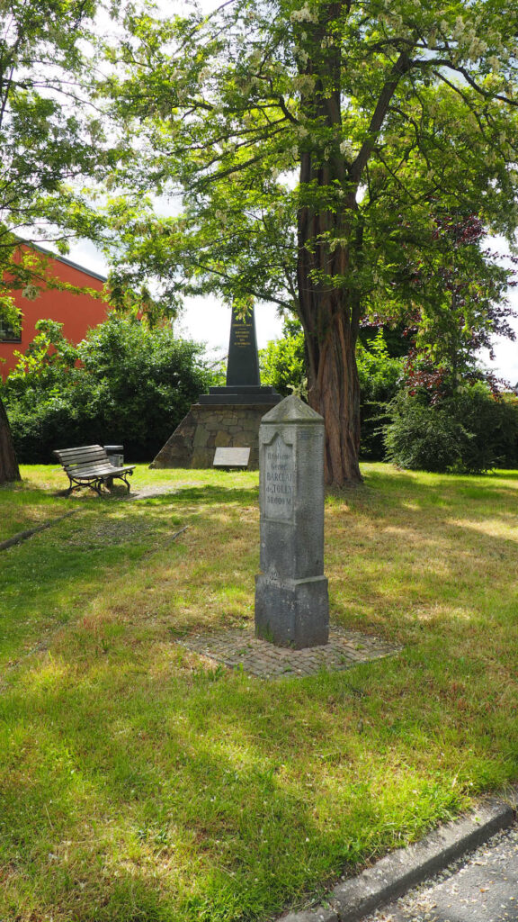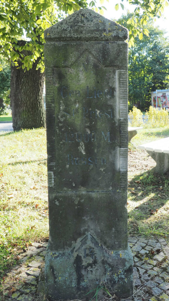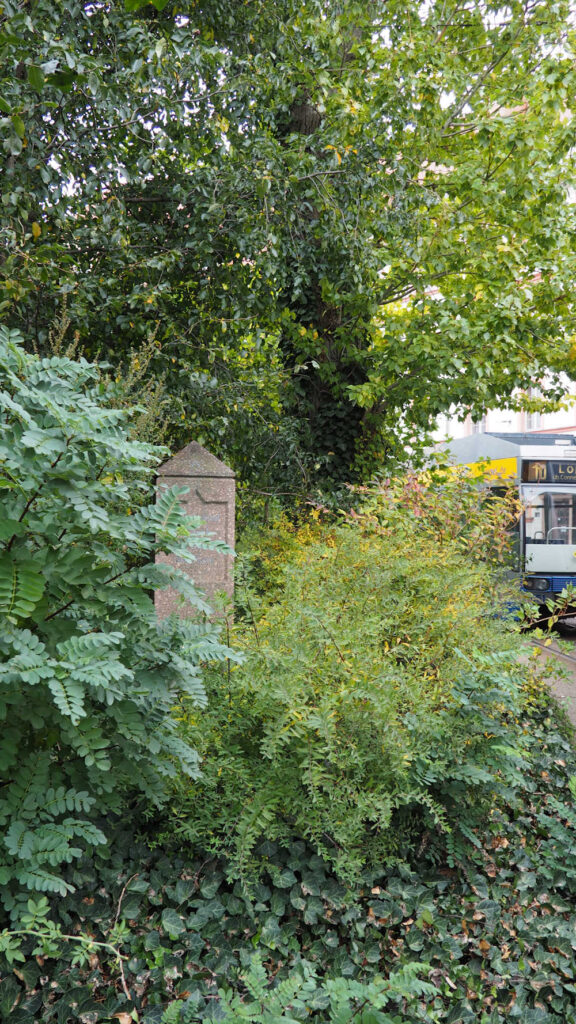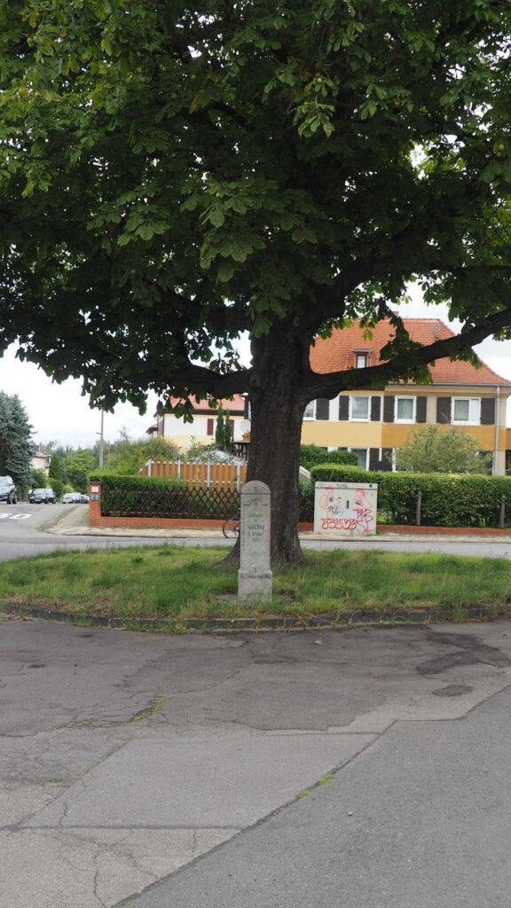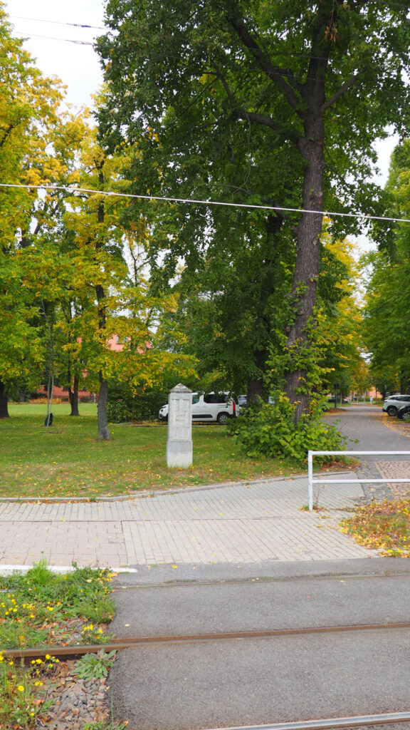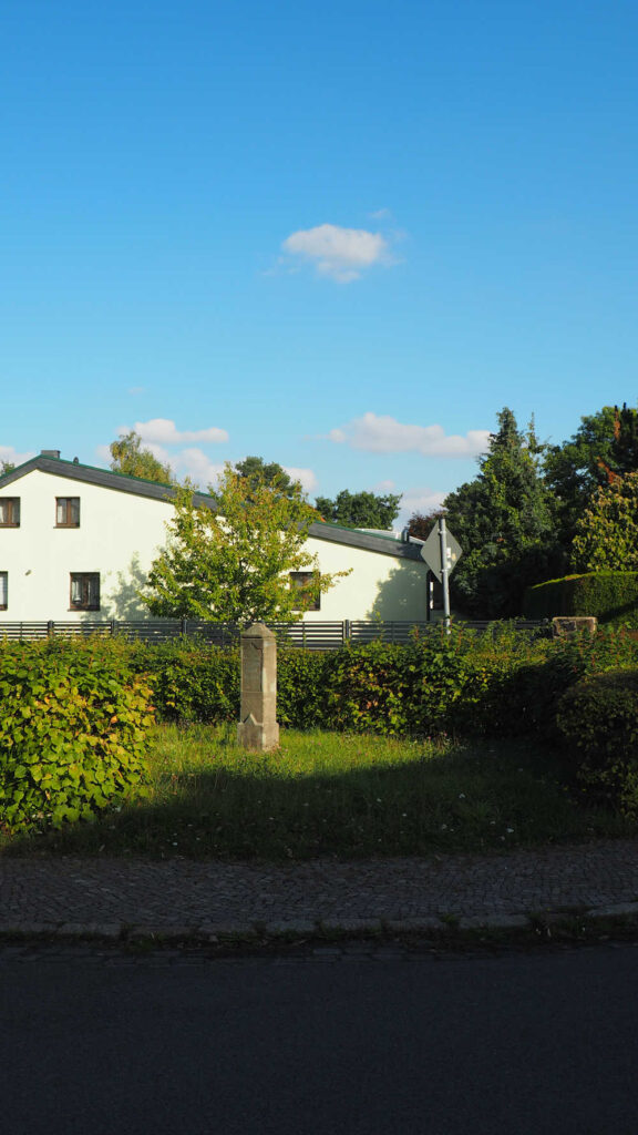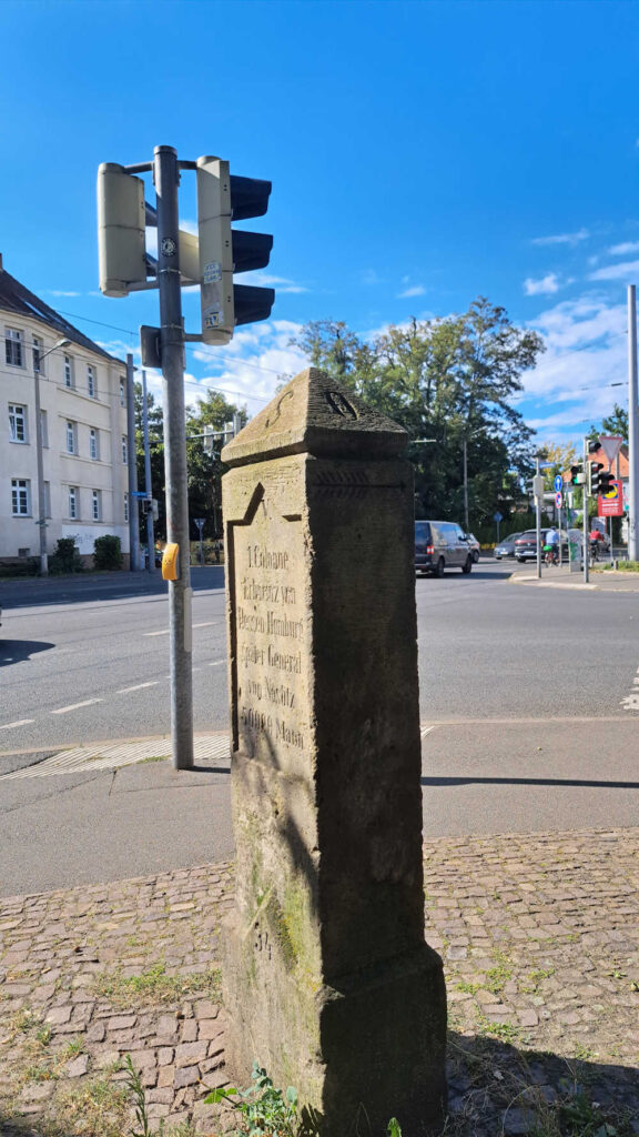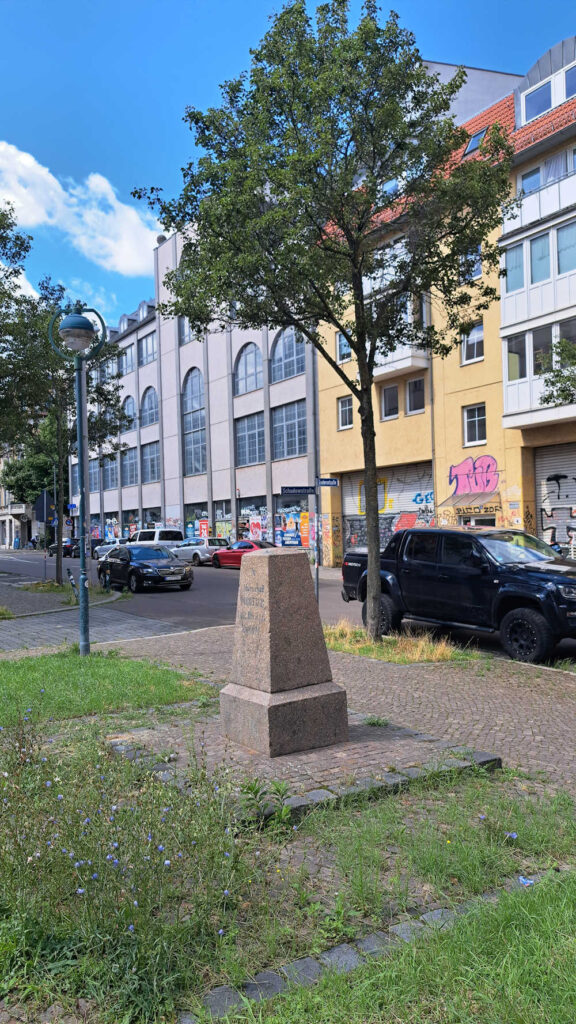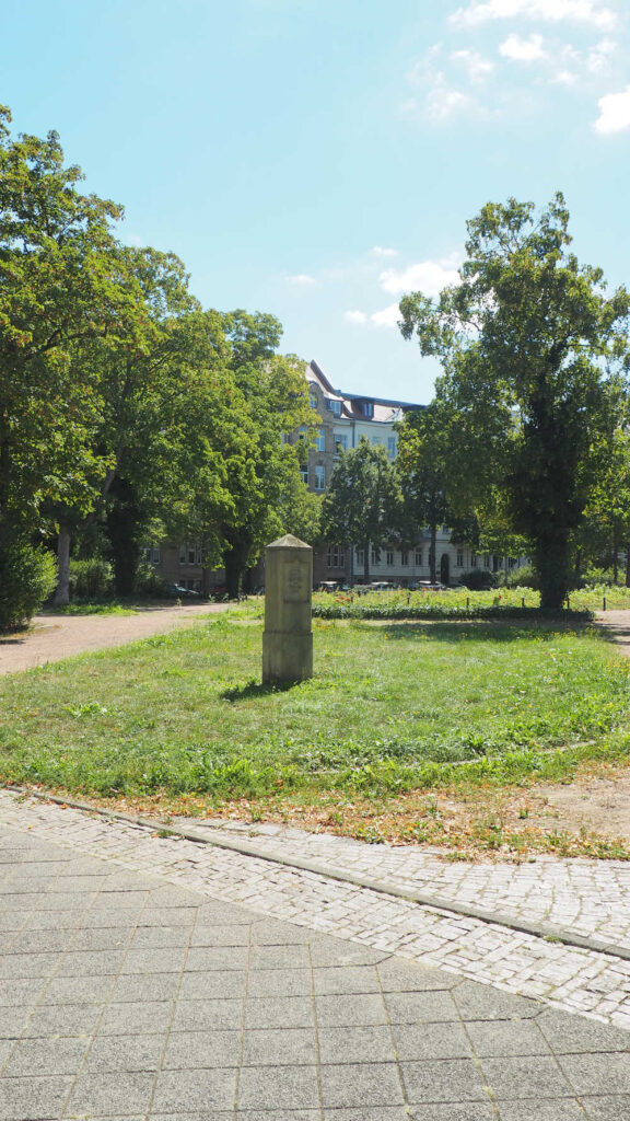 Im Leipziger Westen haben die Steine eine deutlich andere Form (Obelisk ohne Spitze), wodurch diese auf den ersten Blick nicht als Apelsteine erkennbar sind.