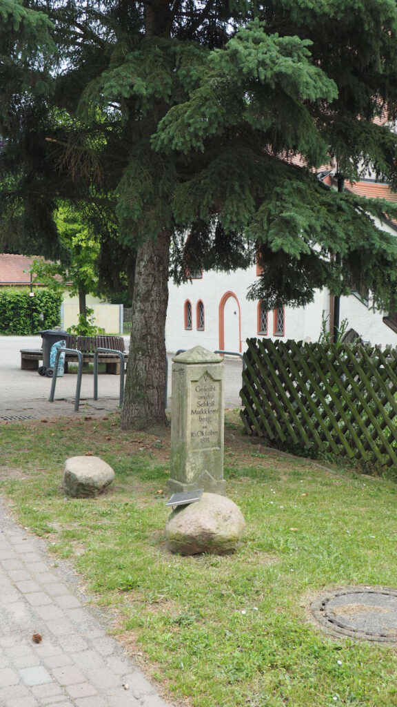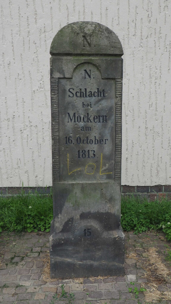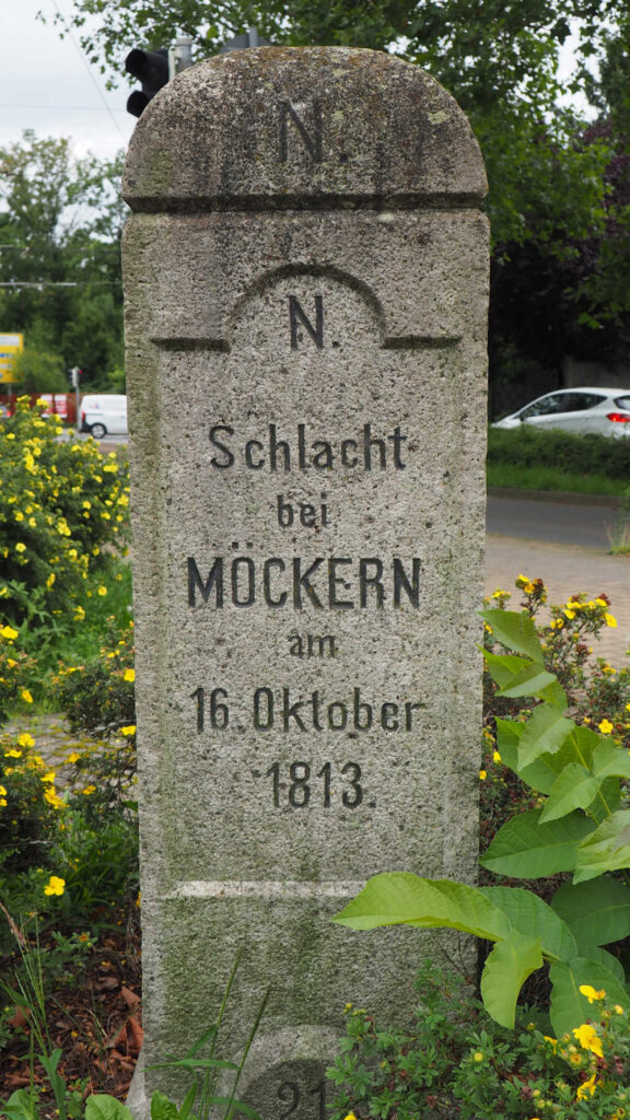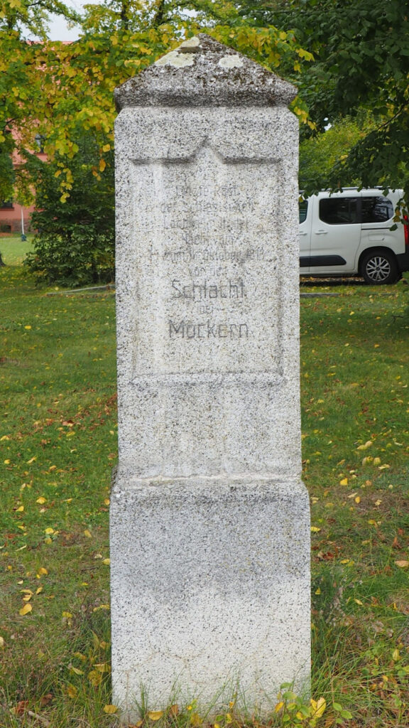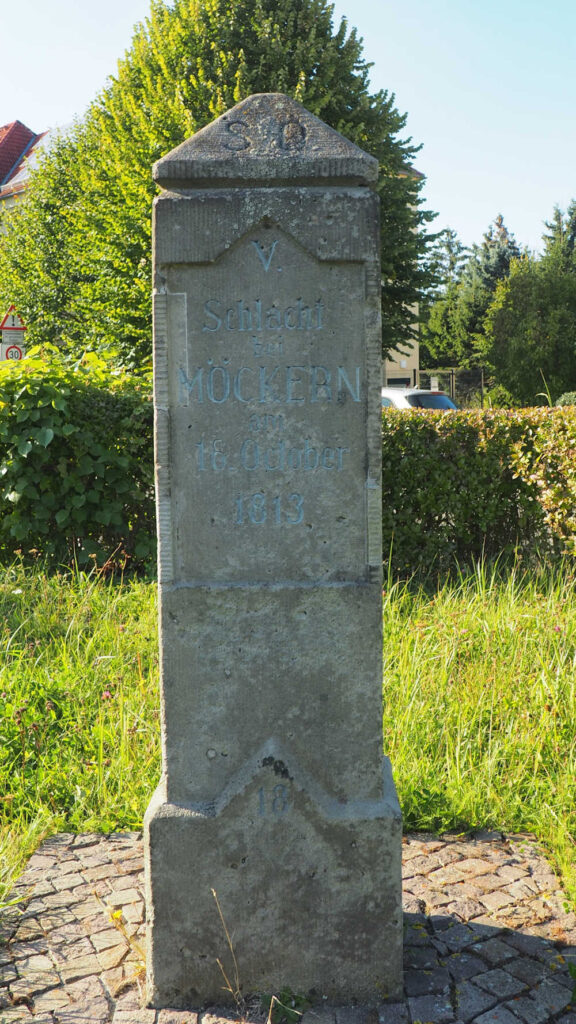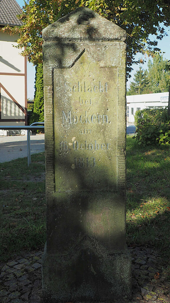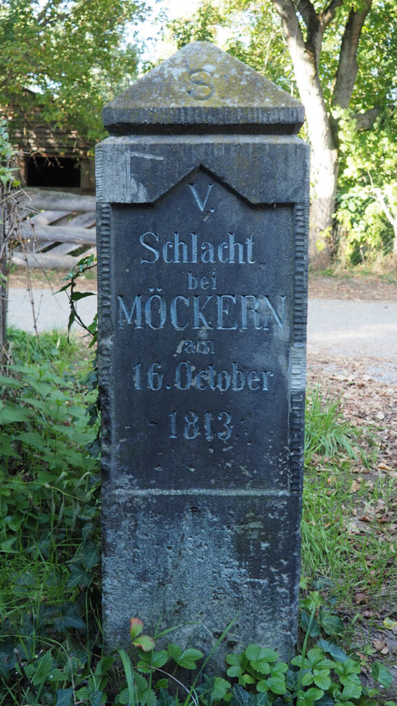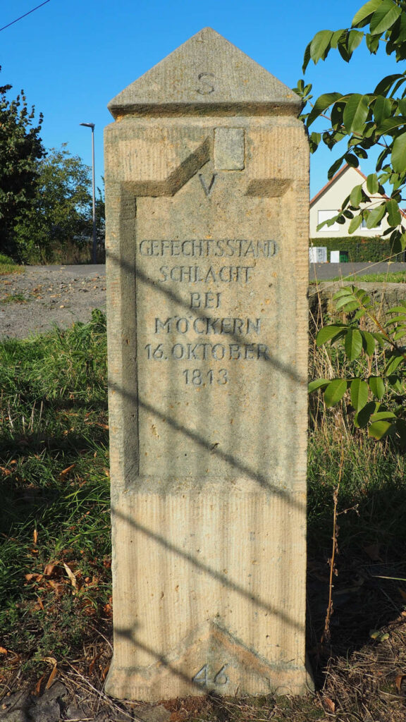 Inschrift zum Schlachtfeld hin: GEFECHTSSTAND SCHLACHT BEI MÖCKERN 16. OKTOBER 1813