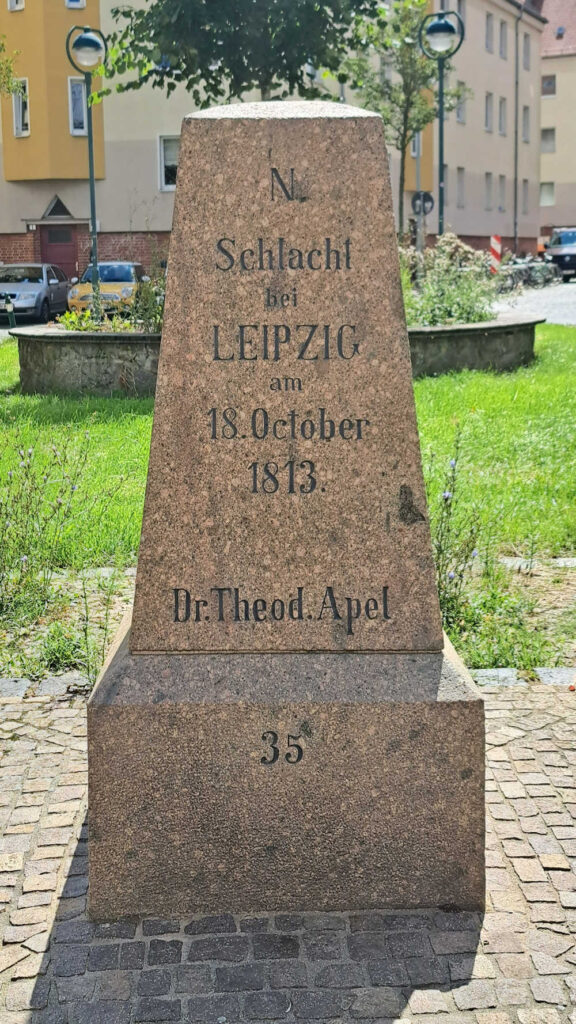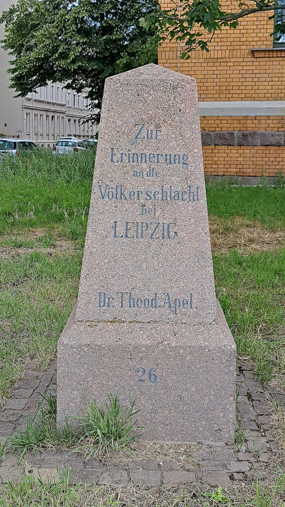 KEIN Auszug aus Theodor Apels „Führer auf die Schlachtfelder Leipzigs“, Theodor Apel hat diesen Apelstein nicht gesetzt.
