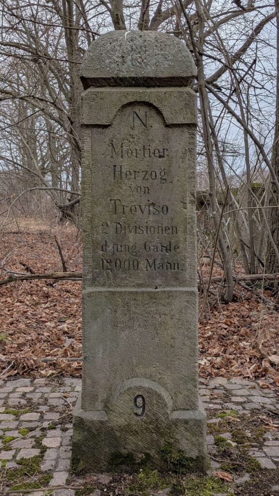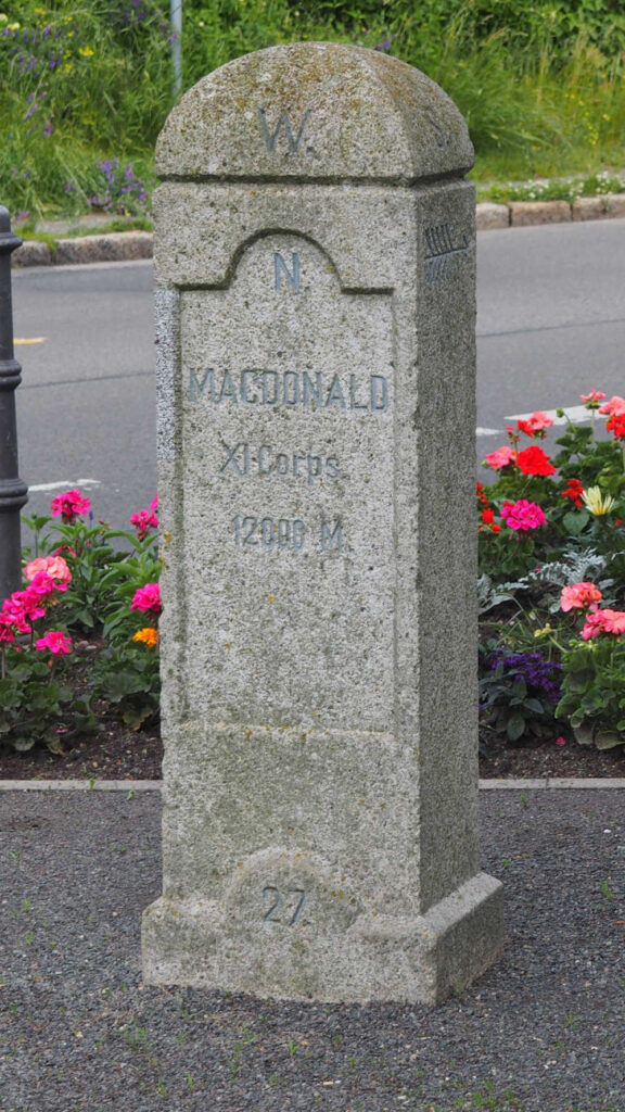 Inschrift vom Schlachtfeld weg: MACDONALD Herzog von Tarent XI. Corps 15,000 Mann