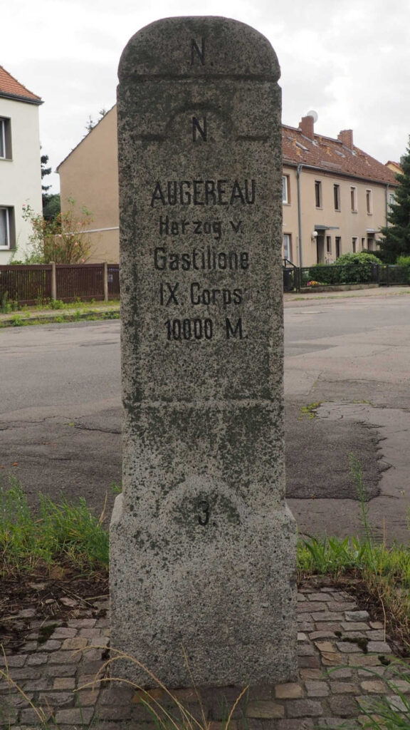 Inschrift vom Schlachtfeld weg: AUGEREAU Herzog von Castiglione IX. Corps 10000 M.