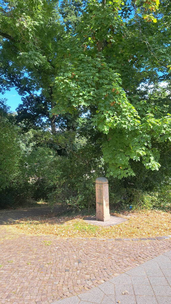 Gesetzt: 1861 von Dr. Theodor Apel (falsche Beschriftung auf dem Stein)