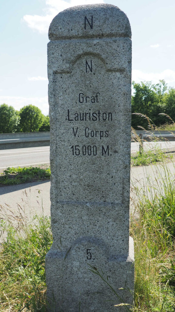 Inschrift vom Schlachtfeld weg: Graf Lauriston V. Corps 15.000 Mann