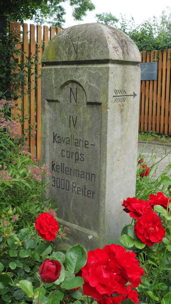 Inschrift vom Schlachtfeld weg: IV. Kavalleriecorps Kellermann 3000 Reiter