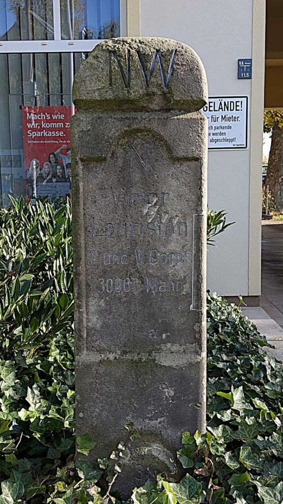 Inschrift vom Schlachtfeld weg: Graf Lauriston V. Corps 15.000 Mann